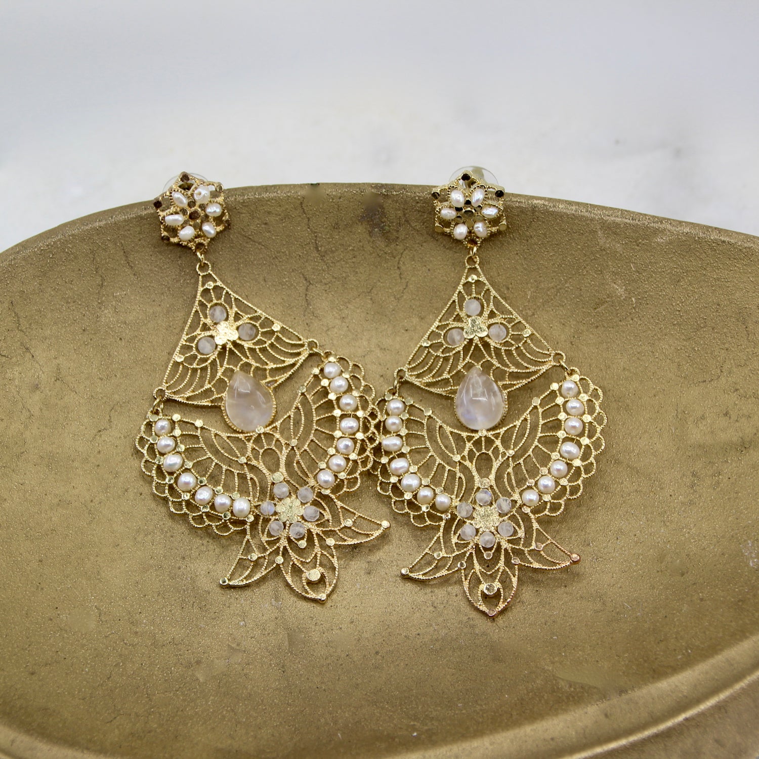 Unleash your inner goddess with our Lapis Lazuli, Malachite, and Carnelian Hand-Crafted Statement Earrings, inspired by the powerful goddess Isis. These striking earrings are made crafted from brass and have a length of 10cm and a width of 6cm.